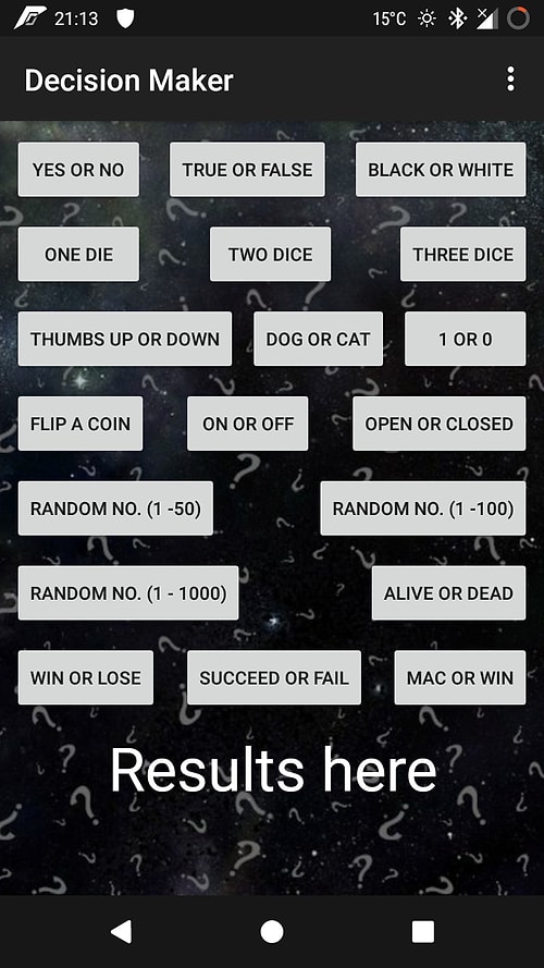 Büyük kararsızlıklar yaşıyorsanız, güle güle kullanacağınız bir uygulama. Fakat kararlarınızın hiçbir desteğinin olmayacağını söyleyelim.
