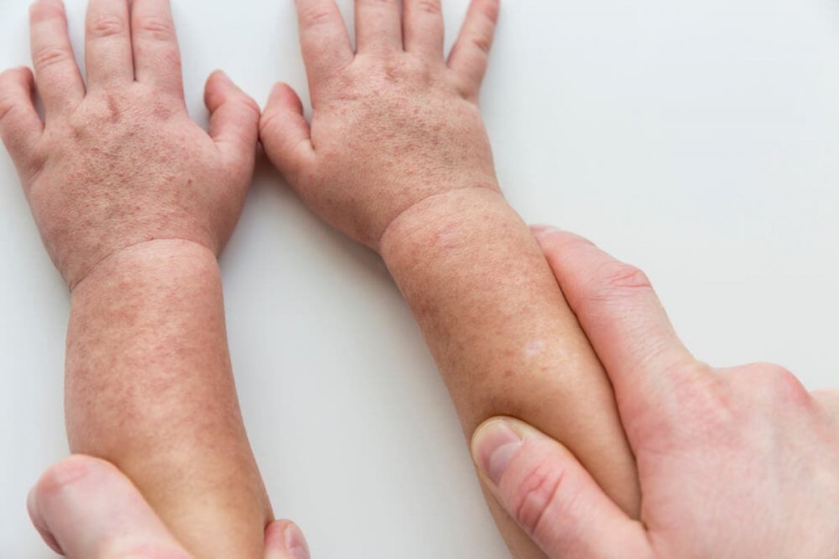 Ateşin düşmesiyle pembe-kırmızı döküntüler başlar, evvel gövde ve uzunluğunda başlar, sonra yüz, kollar ve bacaklara yayılır. Döküntüler çoklukla 1-2 gün ortasında sürebilir.