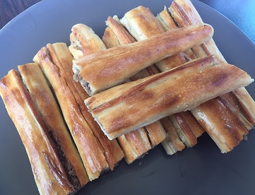 İç harcı için; bir tavada kıymayı kavurun, tuzunu ekleyin. Suyunu çektikten sonra ocaktan alın. Kavrulan kıymaya baharatını ve küp küp doğradığınız soğanı ekleyin.