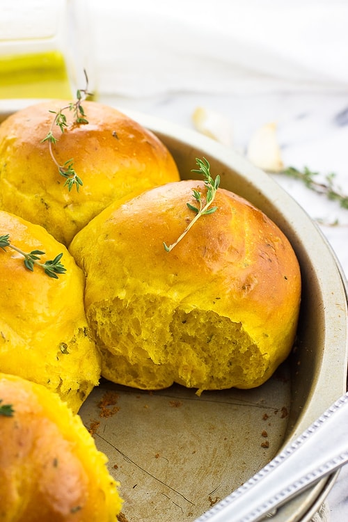 Kabaklarınızı haşlayın. Ardından süzüp biraz soğuduktan sonra ve çatalla ezin. Bir kapta süt ve suyu hakikat sıcaklığa gelene kadar ısıtın 1 çay kaşığı şeker ve mayayı ekleyin, karıştırın ve yaklaşık 15 dakika bekletin. Tüm gereçleri geniş bir kabın içerisinde uygunca yoğurun. Hamur çok yapışkan ise biraz daha un ekleyin. Hamuru yavaşça unlanmış bir yüzeye alın ve bir top halinde birleşene kadar kısa müddet yoğurun. Hamuru yağlanmış bir kaseye koyun, üzerini streç sinemayla yahut pak, nemli bir havluyla örtün. Yaklaşık bir saat boyunca, iki katına çıkması gereken sıcak bir yerde mayalanması için bırakın. Hamur yükseldiğinde, yavaşça unlanmış bir yüzeye geri alın ve 16-20 eşit kesime bölün. Bunları eşit büyüklükte toplar halinde yuvarlayın ve ortalarında boşluk bırakmadan yağladığınız bir fırın tepsisine yerleştirin. Fırını evvelden 160C fanlı ayarda ısıtın ve üzerleri kızarana kadar 20-25 dakika pişirin. Tereyağı, bal ve başka ince doğranmış biberiyeyi karıştırın ve fırından çıkan sıcak ruloların üzerine çokça sürün. Deniz tuzu serpin ve servis edin.