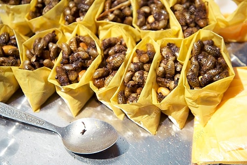 Yine bir Çin atıştırmalığı… Kızartılmış çekirge.