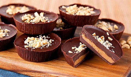 Çikolatayı benmari adabı eritin. Tamamen eriyen ve sıvı bir kıvam alan bitter çikolatayı ocaktan alın. Silikon muffin kalıpları içerisine azar azar ekleyin.Tatlı kaşık yardımıyla form verdiğiniz fıstık ezmelerini orta kısımlarına yerleştirin. Üzerlerini kalan eritilmiş bitter çikolatayla kaplayın. Soğuması için buzdolabına kaldırıp kısa bir müddet beklettikten sonra servis edin.