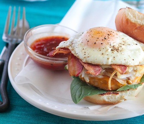 Hindi kıyması, galeta unu, 1 yumurta, rendelenmiş soğan, tuz ve karabiberi geniş bir kapta yoğurarak köfte harcını hazırlayın ve köfteleri yassı biçimde hazırlayın. Tavayı ısıtın. 1 çay kaşığı kadar zeytinyağını tavalardan birine koyun. Tavalardan birine mücverleri koyun ve kızarıncaya kadar her iki tarafını da 2 dakika pişirin. Mücverlerden sonra yumurtaları yağlanmış tavaya kırın ve pişirin. Hindi burgerleri pişirin. Pişmenin son dakikasında peynir dilimlerini ekleyin. Akabinde hamburger ekmeğine evvel mayonez sürün gerisinde ıspanak yaprakları mücver ve burgeri ekleyin son olarak yumurtayı koyun akabinde üst ekmeğini yerleştirin.