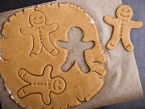 Yaptığınız zencefilli kurabiyeleri, istediğiniz biçimdeki kalıplarla kesin ve dilediğinizce süsleyin. Şayet süsleme için şeker içeren gereç kullanmak istemiyorsanız pişirmeden evvel kurabiyelerin üzerini çizerek süslemelerini yapabilirsiniz.