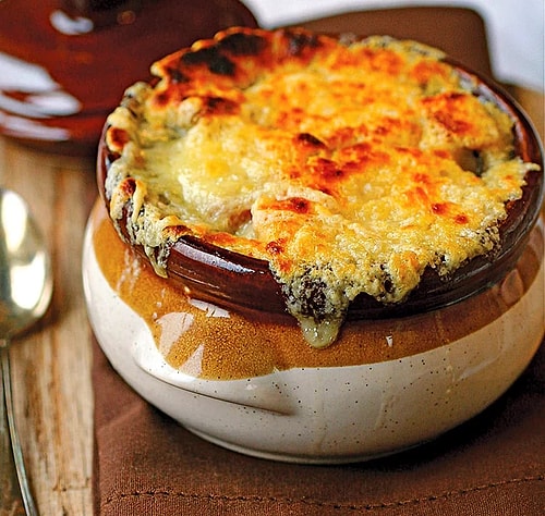Orta ateşte tereyağını büyük bir tencerede eritin. Yarım ay formunda doğranmış soğanları ve şekeri ekleyin. Soğanlar yumuşayana kadar yavaşça kızarana ve karamelize olana kadar pişirin. Soğanlar karamelize olunca sirkeyi ekleyin. Tuz, karabiber ve unu ekleyin ve 1 dakika karıştırarak pişirin. Et suyunu ve defne yaprağını ekleyin. Kaynama noktasına getirmek için ısıyı artırın. Kaynadıktan sonra sıcaklığı orta-düşük düzeye düşürün ve 30 dakika pişirin. Ekmek dilimlerini bir fırın tepsisine yerleştirin ve yavaşça kızarana kadar pişirin. Derin ve porsiyonluk güvelere çorbayı paylaştırın. Üzerine ısıttığınız ekmek dilimlerinden birer tane ekleyin. Son olarak rendelediğiniz kaşar peynirini ek edin ve 200 derecede kaşar peyniri eriyene kadar pişirin.