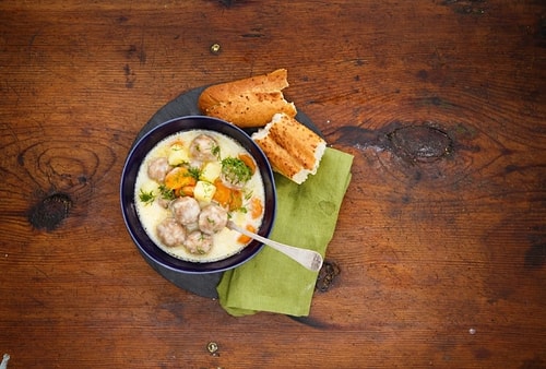 Ardından havuç ve patatesleri küp küp doğrayın. 3-4 dakika yağda kavurun. Üzerine sarımsakları da doğrayın. Akabinde suyu ekleyip kaynatın. Su kaynayınca köfteleri de ekleyin. Köfte ve patatesler pişene kadar pişirin.