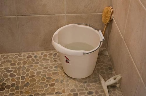 16. Duş almak için açtığınız, ısınana kadar akan suyu bir kovaya doldurun.