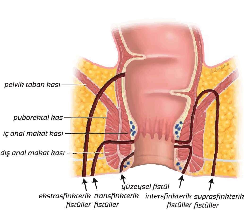 Fistüller, bedenin rastgele bir yerinde görülebilir; lakin en yaygın olarak bağırsak ve anüste gelişir. İdrar yollarında da çeşitli organlara açılan fistüller gelişebilir.