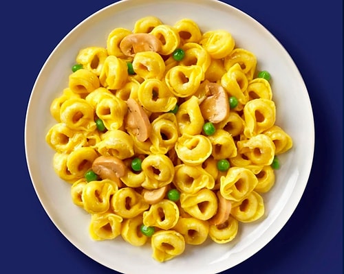 Bir tavada su kaynatın. Su kaynadıktan sonra bir tutam tuz ekleyip makarnayı ek edin ve pakette belirtilen mühlet kadar haşlayın. Bu sırada diğer bir tavada ince dilimlenmiş mantarları, biraz zeytinyağı ve bir tutam tuzla soteleyin. Daha sonra bezelyeleri ek ederek kısık ateşte birkaç dakika daha pişirin. Tortellini’yi süzün ve sebzelerle karıştırarak servis edin.