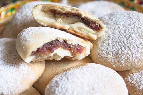 Yağı ve şekeri çırpın. Yoğurdu ve yumurtayı ekleyip çırpmaya devam edin. Kuru materyalleri farklı bir kapta karıştırın ve süzgeçten geçirerek başka karışıma yavaş yavaş ekleyin. Yeterlice yoğurduğunuz hamuru üzerini kapatıp yarım saat dinlendirin. İç harç içi tüm materyalleri blenderdan geçirin. Unlanmış tezgahta dinlenen hamuru 1 parmak kalınlığında açın. Çay bardağının ağzıyla yuvarlaklar kesin. Ortalarına iç harçtan koyun. Kapatıp yuvarlayarak yağlı kağıt serili fırın tepsisine dizin. 180 derecede 15-16 dakika kadar pişirin. Üzerine pudra şekeri serpip servis edin.