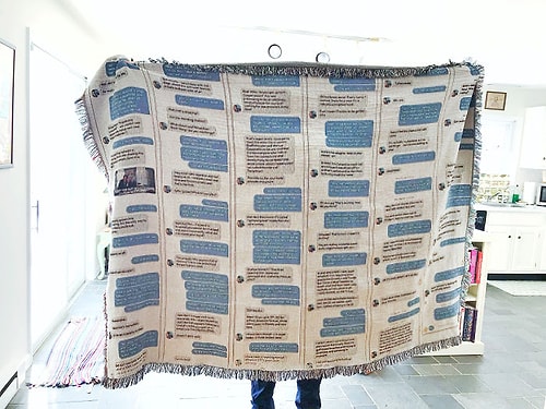 5. “Kız arkadaşımla birinci yıl dönümümüz için bu hediyeyi yaptım. Tinder'da tanışmıştık. Ben de doğal olarak birinci konuşmalarımızı bu battaniyeye bastırarak armağan etmek istedim.”