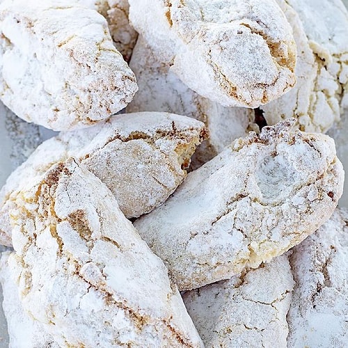 Fırını evvelce 160°C’ye ısıtın ve bademleri yaklaşık 15 dakika kavurun, kahverengiye dönmeye başlar başlamaz fırından çıkarın. Fırını açık bırakın ve bademleri soğumaya bırakın. Bir mutfak robotunda kavrulmuş bademleri, şekerin yarısını ve limon kabuğu rendesini çok ince olana kadar karıştırın. Yumurta beyazlarını katılaşana kadar çırpın, sonra kalan şekeri çırpın ve vanilya ve badem özleri ile birlikte öğütülmüş badem karışımına ekleyin. Ellerinizi ıslatın, akabinde yarım tatlı kaşığı alıp bir top haline getirin ve yaklaşık 2 cm kalınlığında düzleştirin. Bunlardan yaklaşık 20 adedini hazırlayın, fırın kağıdıyla kaplı bir tepsiye koyun ve bisküviler ortasında en az 2,5 cm boşluk bıraktığınızdan emin olun. Fırında yaklaşık 20-25 dakika yahut altın rengini alana kadar pişirin. Tepsinin soğumasını bekleyin, akabinde pudra şekerini alın ve serpin.