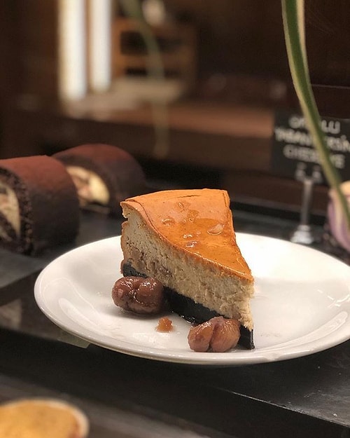 Kestanelerin kabuklarına keskin bir bıçakla çizik atın. Kestaneleri yıkayıp, 30-40 dakika, güzelce yumuşayana kadar haşlayın. Kestaneleri teker teker kevgirle çıkarıp, akan musluğun altında kabuklarını soyun. Ayıklanmış kestaneleri kahve ve süt ile birlikte bir kaseye koyun. El blender’ı ile püre haline getirin. Şayet kıvamı ezilemeyecek kadar ağırsa 1/4 bardak süt daha ekleyin. Fırınınız 190C’de evvelce ısıtın. Kek kalıbınızı tereyağıyla yavaşça yağlayın. Bisküvileri mutfak robotunda çekip kırıntılar elde edilen. Erimiş tereyağını ekleyip iyice karıştırın. Kek kalıbına boşaltıp üzerini bir bardağın tabanıyla bastırarak düzleştirin. Evvelce ısıttığınız fırında 10 dakika pişirin. Fırınınızın derecesini 170C’ye indirin. Mascarpone ve labne peynirini bir kapta yumuşayana kadar çırpın. Yumurta, şeker ve vanilya esansını ekleyin ve karışana kadar çırpın. Kahve ve kestane püresini ekleyin. Mikserle 2-3 saniye karıştırarak peynirli karışıma yedirin. Dolguyu bisküvi tabanlı kek kalıbının üzerine dökün. Fırınınızın orta rafında 50-60 dakika pişirin. Cheesecake kenarları sabit, hafif sarsıldığında ortası biraz titreştiği vakit hazırdır. Fırından çıkarıp soğumaya bıraktığınızda sertleşecektir. Fırından çıkarıp kekin etrafından ince bir bıçak gezdirin. Cheesecake’i kalıbında içinde soğumaya bırakın. 3-4 saat buzdolabında dinlendirin. Dilerseniz üzerine kakao serperek servis edin. 2-3 gün buzdolabında tazeliğini korur.