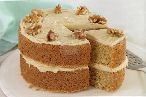 Yumurta ve tozşekeri çırpın. Yarım su bardağı süt ve margarini ekleyip, tekrar çırpın. Kabartma tozu, kahve, kakao ve unu ekleyip çırpmaya devam edin. 22 cm’lik yağlanmış kalıba dökün. 150 derece fırında 30-40 dakika pişirip, soğutun. Ayrı bir yerde kreması için tozşeker, buğday nişastası, pirinç unu, süt ve vanilyayı karıştırın. Kıvamı yoğunlaşınca ocaktan alıp ılıtın. Kremayı kekin üzerine döküp, cevizleri dizin. Karamel için, tozşekeri tavaya koyup, şeker eriyince ocaktan alın. Üzerine suyu döküp, tekrar ocağa koyun. 2-3 dakika karıştırıp, kıvamına gelmesini bekleyin. Hafif soğuyunca cevizlerin üzerine döküp, servis yapın.