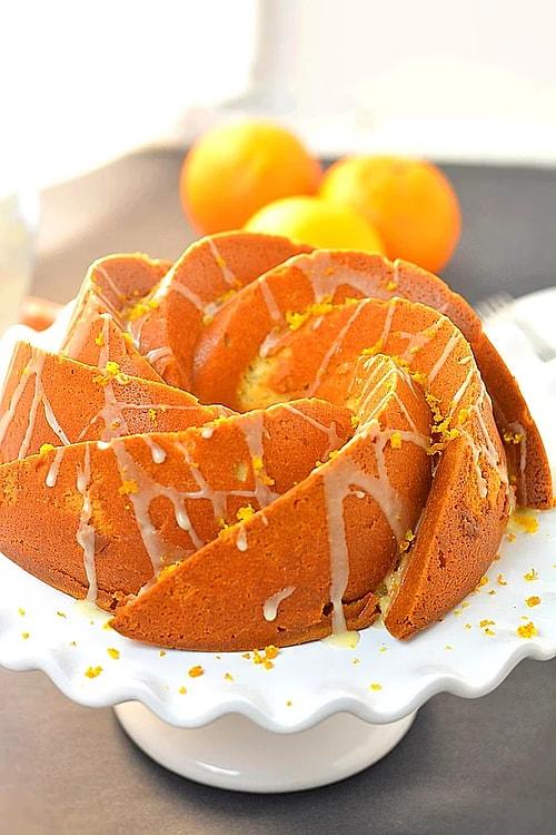 Glazür için pudra şekeri ve portakalın suyunu bir kaseye alın. Şeker büsbütün eriyene kadar karıştırın. Soğuyan kekin üzerine gezdirin. Portakal kabuğu rendesiyle servis edin.