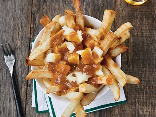 Poutine; patates, gravy sos ve peynirden yapılan klâsik bir Kanada yemeği.