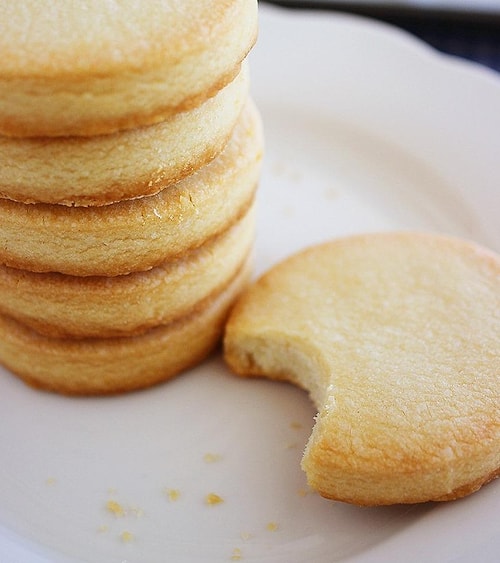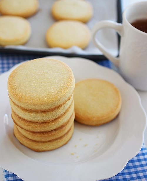Bir kabın içerisine oda sıcaklığındaki yumuşamış tereyağını, pudra şekerini ve unu ekleyerek düzgünce yoğurun. Merdane yardımıyla açın ve çay bardağı ile yuvarlak haller kesin. Yağlı kağıt serdiğiniz fırın tepsisine dizin. Evvelden ısıtılmış 170 derece fırında 15-18 dakika pişirin.