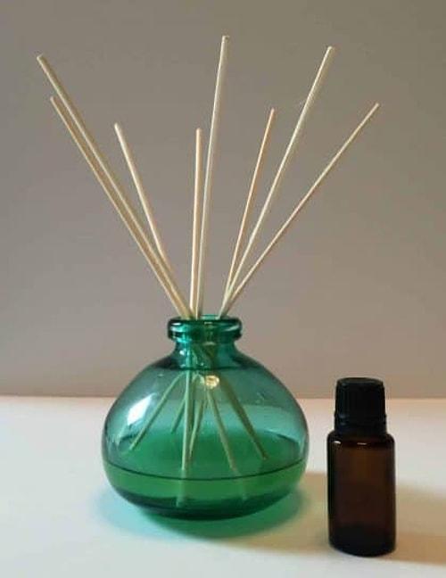 Badem yağı, izopropil alkolü (badem yağının biraz incelmesine yardımcı olur) ve 15 damla uçucu yağı ekleyin, biraz karıştırın. Sonra, kabınıza 3-5 bambu koku çubuğu ekleyin ve biraz hareket ettirin. Yağların bambulardan üst hakikat hareket etmesi bir yahut iki saat sürecek, sonra verdiği kokuyu koklayabileceksiniz.