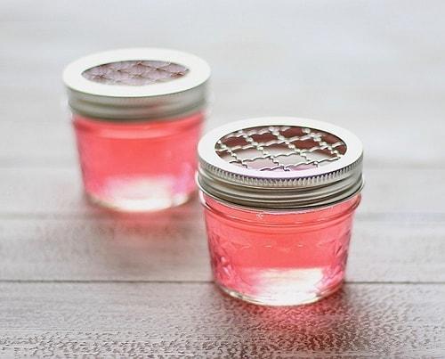 1 su bardağı su kaynatın, ocaktan alın ve uçucu yağları ve tuzu yavaşça karıştırın. Jelatin içine dikkatlice serpiştirirken karıştırmaya devam edin. Çözündükten sonra yavaşça 1 bardak soğuk suda karıştırın. Bunu kuvvetlice karıştırmayın, aksi takdirde köpükleşir. Bu karışımı küçük cam kavanozlara paylaştırın ve kapağını kapatın. Düz bir yerde 2-3 gün bekletin. Kullanacağınız kadarının kapaklarına delikler açın ve mis kokuyu hissedin.