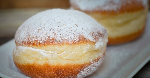 Ilık süt, şeker ve kuru mayayı orta uzunluk bir kasede karıştırın ve oda ısısında bekletin. Farklı bir kapta tereyağı, yumurta ve vanilyayı blenderla çırpın. İçerisine mayalı karışımı ek edip, tekrar çırpın. Karışıma unu yedire yedire ek edin. Kabın kenarlarını ve hamurun üzerini yağlayın, 1 saat dinlendirin. Dinlenen hamuru açın ve yuvarlak bir kalıpla kesin. Kızgın yağda kızartın. Çikolatayı, krema ve tereyağını benmari tekniği ile eritin. Kızarmış donutları çikolataya batırıp servis edin.