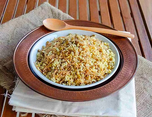 Mercimeği 5-6 saat evvelden ıslatın. Daha sonra düzgünce yıkayıp pişireceğiniz tencereye koyup üzerini geçecek kadar su koyun ve bir taşım kaynatın. Şehriyeyi 2 çorba kaşığı sıvı yağda güzelce kahverengi olana kadar kavurun. Bir taşım kaynayan mercimeğin suyunu süzüp tekrardan tencereye alıp üzerine 5 su bardağı sıcak su koyun. Kaynamaya başlayınca bulguru ve şehriyeyi içerisine ekleyin. Tekrar su kaynamaya başlayınca tuzunu ekleyip kapağını kapatın ve kısık ateşte suyunu çekene kadar pişirin. Tereyağı da yemeklik kare kare doğradığınız soğanları düzgünce kavurun ve pişen pilavın üzerine döküp pilavınızı karıştırın. Dileğe nazaran üzerine karabiber ile servis edebilirsiniz.