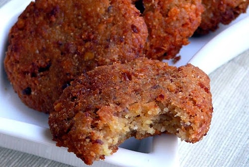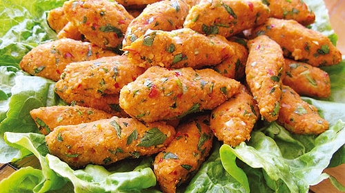 Mercimekleri üzerini geçecek formda suyla haşlayın. Mercimekler yumuşayınca altını kapatın. İçine bulguru koyun ve tencerenin kapağını kapatıp bulgur ve mercimeği bekletin. Bulgur yumuşayınca karıştırarak soğutun. Soğanları pembeleşinceye kadar pişirin. İçine salçaları ekleyip salçaların kokusu çıkana kadar kavurun. Salçalı karışımı mercimeklerin içine ekleyin. Ilındıktan sonra yoğurun. Maydanoz ve taze soğanları ince ince kıyın. Sarımsakları ezin. Mercimeklerin içine ekleyin. Limon, zeytinyağı, kimyon, tuz, karabiber ve pul biberi ekleyip bütün gereçler uygunca karışana kadar yoğurun. Biçim verip servis edin.