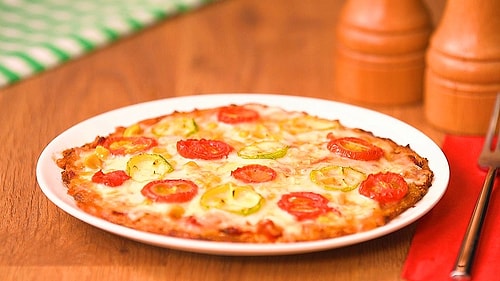 Karnabaharın gövdeleri hariç kalan yerleri mutfak robotundan geçirin. 150 derece fırında 12 dakika pişirin. Fırından çıkardıktan sonra yumurta, rendelenmiş kaşar peynirini ve baharatlarla karıştırın. Karışımı yağlı kağıdın üzerine pizza tabanı üzere yayın. Evvelce ısıtılış 180 derece fırında 20 dakika pişirin. Bu esnada domates sosu için gerekli gereçleri karıştırın. Fırından çıkan tabının üzerine sürün. Peynirle ve istediğiniz gereçler ile kaplayıp üzerindeki peynir eriyene kadar fırında yakalım 10-12 dakika pişirin.