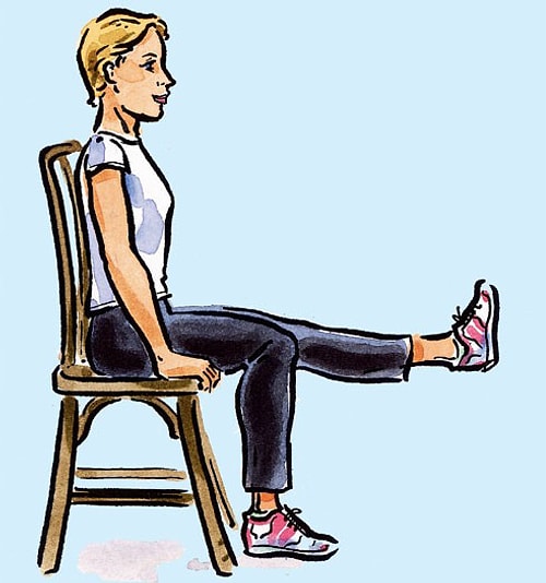 Dizlerinizin ortasına bir top alarak sıkın, ayaklarınızı kaldırın ve gerinin. Oturduğunuz mühlet boyunca orta ara bunları yapın.