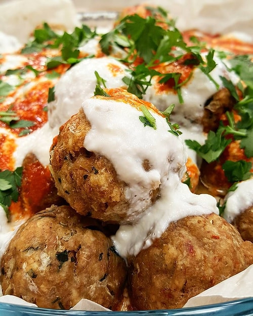 Bayat ekmeği akan suya tutup yavaşça nemlendirin, çok ıslatmayın. Islattığınız ekmekleri yoğurma kabına alıp elinizle modül parça yapın. 3-4 dilim kuru ekmeği robotta galeta unu üzere incecik çekin. Bayat ekmekleri düzgünce yoğurduktan ve hamur haline getirdikten sonra yumurtayı kırın ve baharatları zevkinize nazaran ekleyin. Kıymayı da ekleyerek karıştırın ve çıtırlık vermesi için galeta ununu ek edin. Hamur büsbütün hazır olduğunda bir kase su alın ve elinizi ıslatarak top top köftecikler yapın. Şayet kızartmak istemiyorsanız bir kuru soğanı yağda soteleyip kıymayı da kavurarak az domates eği ile pişirip ekmek hamuruna ek edin. Bu biçimde yoğurup kızartmadan da köfteler yapabilirsiniz. Hazırladığınız köfteleri kızgın yağda kızartarak havlu kağıt serili tabağa alın. İçlerini çekmeleri için tavanızı orta ara sallayarak kızartın. Servis vakti sarımsaklı yoğurt hazırlayıp üzerine kırmızı biberli yağ gezdirin. Afiyet olsun.