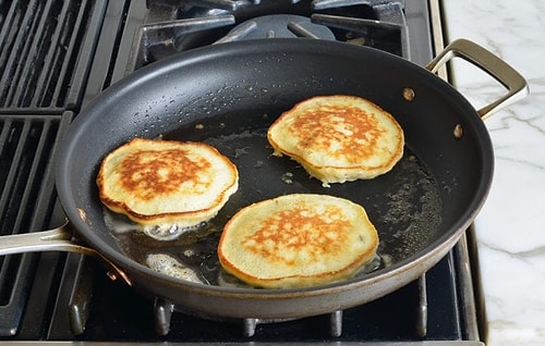 Muzu çatal yardımıyla ezerek püre haline getirin. Daha sonra tüm materyalleri güzelce çırpın. Tavaya 1 yemek kaşığı yağ koyun. Güzelce ısındıktan sonra kepçe yardımıyla hazırladığınız hamurdan tavaya aktarın. Hamur kabarıp, göz göz olduğunda öteki yüzünü çevirin ve pişirin.