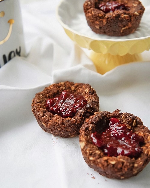 Yarım bardak yulaf, ceviz, hurma püresi ve hindistan cevizi yağını doğrayıcıdan geçirip düzgünce karıştırın. Bir kaba aktarıp üstüne taban için geri kalan kuru gereçleri ekleyin. Tüm gereçleri karıştırıp küçük yuvarlak toplar yapın, muffin pişirme kaplarını yağlayın ve topları tek tek yerleştirin. parmağınızla kup hali verin. Şayet o denli bir kabınız yoksa; elinizle kup formu vererek fırın kağıdında pişirebilirsiniz. Evvelden ısıtılmış, 170 derecelik fırında 20 dakika pişirin.