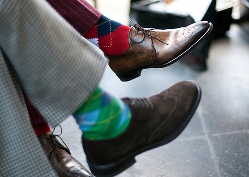 17. Çoraplar elbette ki kişiliğinizin bir uzantısıdır, fakat ayakkabınızla, pantolonunuzla tıpkı renk olmalı diye bir düstur yok.