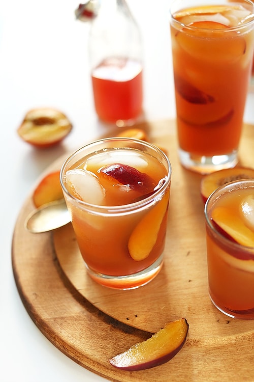 Çayı demleyin ve soğutun. Şeftalileri elma dilimi halinde kesin ve suyla birlikte sos tenceresinde 6-7 dakika kaynatın. Şeftaliler aromasını ve rengini suya verince süzün. Üzerine şekeri, demlenmiş çayı ve minik minik doğranmış şeftali modüllerini ek edin, karıştırın. Buzdolabında soğuttuktan sonra buz ve nane ekleyip servis edin.