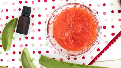 2 yemek kaşığı domates suyu + 1 yemek kaşığı aloe vera jel