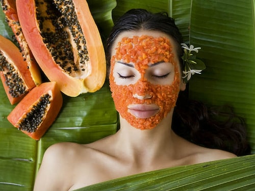 Bir karıştırma kabına 1 çırpılmış yumurta akı ekleyin. Bir fincan papaya ezin ve çırpılmış yumurta akına ekleyin. 1 çay kaşığı bal ekleyin. Düzgünce karıştırın. Gözenekleri açmak için yüzünüzü ve boynunuzu ılık su ve yağsız bir temizleyici ile yıkayın. Karışımı uygulayın ve 15 dakika kurumaya bırakın. Gerekirse, ılık su ve yumuşak bir bezle durulayarak maskeyi çıkarın. Gözenekleri kapatmak ve sıkmak için cildinize soğuk su dökün ve yumuşak, pak bir havluyla kurulayın.