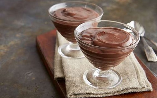 Bir tencereye sütü koyun. Un, kakao ve toz şekeri ekleyin. Çırpıcı ile daima karıştırarak pişirin. Kaynamaya başladığında bitter çikolatayı ve tereyağını koyun. Eridiklerinde ocaktan alın. Pürüzsüz bir kıvam için daima karıştırarak soğutun. Servis için kaselere alın.