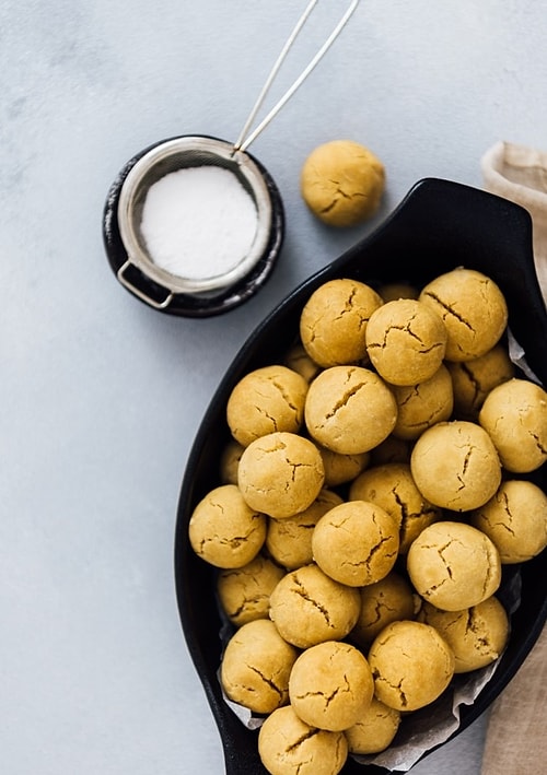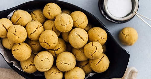 Fırını evvelce 180 dereceye ısıtın. Tüm materyalleri uygunca yoğurduktan sonra hamurunuzdan kesimler kopararak yuvarlayın ve fırın kağıdı serili tepsiye dizin. 20 dakika pişirin.