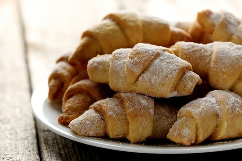 Öncelikle elmalarımızı rendeleyip küçük tencereye koyalım üzerine şekeri, tarçını ve cevizi koyalım suyunu çekene kadar pişirelim. Piştikten sonra soğutalım öbür tarafta hamur kabına öteki materyalleri koyup hamurumuzu yoğuralım hamurumuzu beşe bölelim her parçayı açıp bıçak yardımıyla sekize bölelim. Kenarlarına elmalı harçtan koyalım sigara böreği üzere saralım. Yağlanmış tepsiye dizelim fırında üstü pembeleşene kadar pişirelim. Servis tabağına alalım üzerine pudra şekeri serpelim.