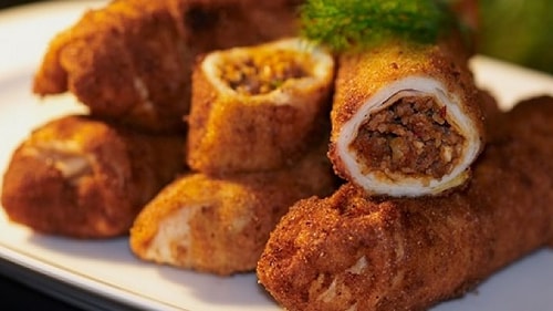 Kıymalı iç harcı için; kuru soğanı küçük modüller halinde doğrayın. Bol suda yıkayıp fazla suyunu süzdürdüğünüz ayıklanmış maydanoz yapraklarını incecik kıyın. Ceviz içini keskin bir bıçak yardımıyla kıyın. Kapaklı küçük bir kaseye aldığınız köftelik ince bulgurun üzerini örtecek kadar sıcak su ekleyin. Kapağını kapatıp şişmesi için kısa bir müddet bekletin. Tereyağı ve sıvı yağı bir tavaya alıp kızdırın. Soğanları ekleyip, soğanlar diriliğini kaybedene kadar kavurma sürecini sürdürün. Soğanların üzerine kıymayı, tuz ve karabiberi ekleyin ve kavurma sürecine devam edin. Kavrulan kıymanın üzerine ceviz, şişmiş ince bulgur ve doğranmış maydanozu ekleyip karıştırın ve ocağın altını kapatın. Yufkaları dörde bölün ve her birini fırça ile yağlayın. Yufkanın geniş kısmına kıymalı harçtan ekleyin ve evvel kenarlardan katlayarak rulo haline getirip kapatın. Yumurtaları geniş bir kapta çırpın. Elenmiş galeta ununu düz bir tabağa alın. Hazırladığınız avcı böreklerini öncelikle çırpılmış yumurtaya akabinde galeta ununa bulayın. Kızgın yağda kızartın ve sıcak olarak servis edin, sevdiklerinizle afiyetle yiyin.
