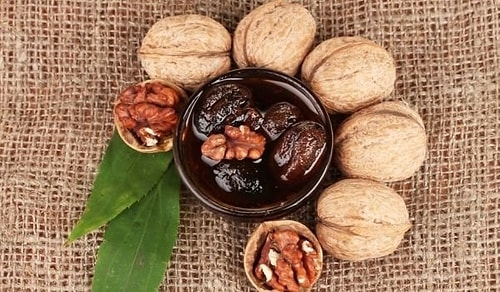Ham cevizlerin kabuklarını çok ince olacak halde soyun. Büyük bir kavanoza üzerlerine geçecek kadar içme suyu koyun. 2 gün boyunca o suyun içerisinde beklesinler sonra günde 3 kez, 7 gün boyunca suyunu değiştirerek cevizleri içme suyunda bekletmeye devam edin. Sudan çıkardığınız cevizleri 1 gün boyunca kireç kaymağına yatırın. 1 günün sonunda cevizleri 2-3 su yıkayın ve hafif yumuşayana kadar yaklaşık 20 dakika kadar olağan suyun içerisinde haşlayın. Sonra süzüp soğuk suya atın. Cevizleri kürdanla delerek içerisindeki acı suyun çıkmalarını sağlayın. Su, şeker ve limon suyu ile kıvamlı bir şerbet hazırlayın. Deldiğiniz ve acı suyunu çıkardığınız cevizleri karanfillerle bir arada şerbetin içerisine atın. Şerbeti kıvam bulmaya başlayınca ocaktan alın ve tencerenin üzerine bir tülbent örtüp 1 gün boyunca güneşin altında bekletin. Sonraki gün ceviz tanelerini süzerek kenara alın ve şerbeti tekrardan kaynatın. Kıvamı yeterlice yoğunlaşınca cevizleri de içerisine ekleyip. Soğumasını bekleyin. Reçel düzgünce soğuyunca kavanozlara koyup buzdolabında saklayın.