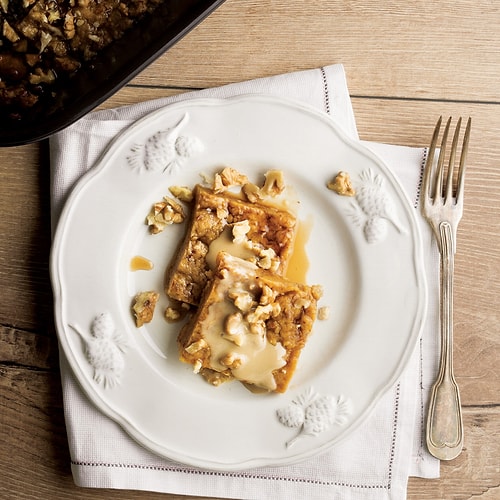 Krema için olan kahve granüllerini 1 yemek kaşığı kaynar suda eritin. Tereyağı ve pudra şekerini kabarana kadar çırpın ve en son kahveyi ekleyin. Kekleri birleştirmek için tereyağlı kremanın yarısını kullanın. Üstünü kalan krema ile kaplayın ve kalan cevizlerle süsleyin.