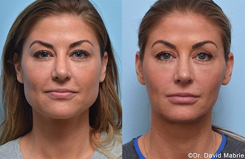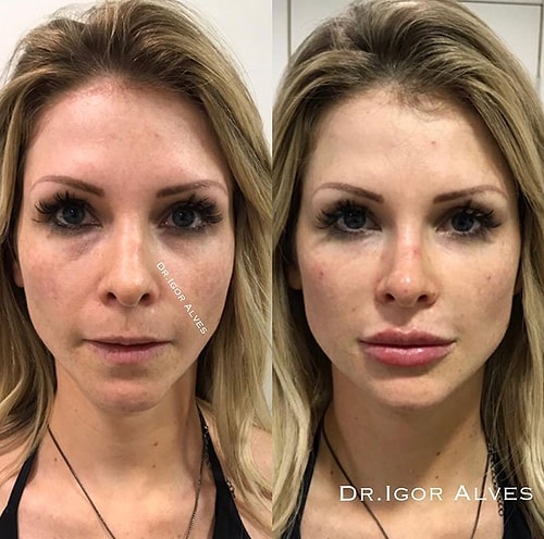 Yanak dolgusu dediğimiz elmacık kemiği üstü dolgusu ile yüz gerginleşiyor ve ağız kenarında çökme ile oluşan çizgiler de açılmış oluyor.