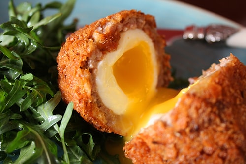 Yumurtalardan 6 adedini haşlayın soyun bir kenarda bekletin. Kıymayı bir kaba alın. Üzerine karabiber, kekik, tuz ve kırmızı toz biber ekleyip düzgünce yoğurun. Haşladığınız yumurtaları una batırıp sonra kıymayla kaplayınız. Kalan 1 adet yumurtayı bir kasede çırpın. Kıymayla kapladığınız yumurtaları birinci evvel çırpılmış yumurtaya sonra galeta ununa bulayın. Tavada sıvı yağı kızdırın ve hazırladığınız yumurtaları bu yağda kızartın. Sıcak olarak servis edin.