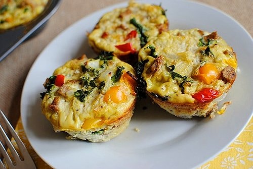 tüm gereçleri doğrayın. Geniş bir kabın içerisine yumurtaları kırıp tuz ve karabiber ile çırpın. Akabinde öteki materyalleri ek edip, karıştırmaya devam edin. Son olarak kabartma tozunu aktarıp, muffin kalıbını yağlayın. Karışımı kalıplara bölüştürün. Evvelden ısıtılmış 180 derece fırında 20-25 dakika pişirin ve servis edin.