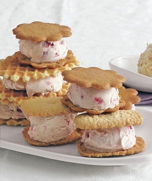 Sandviç dondurmaları misafirlik bir pastaya dönüştürmek için biraz krema ve şeker size yardımcı olabilir.