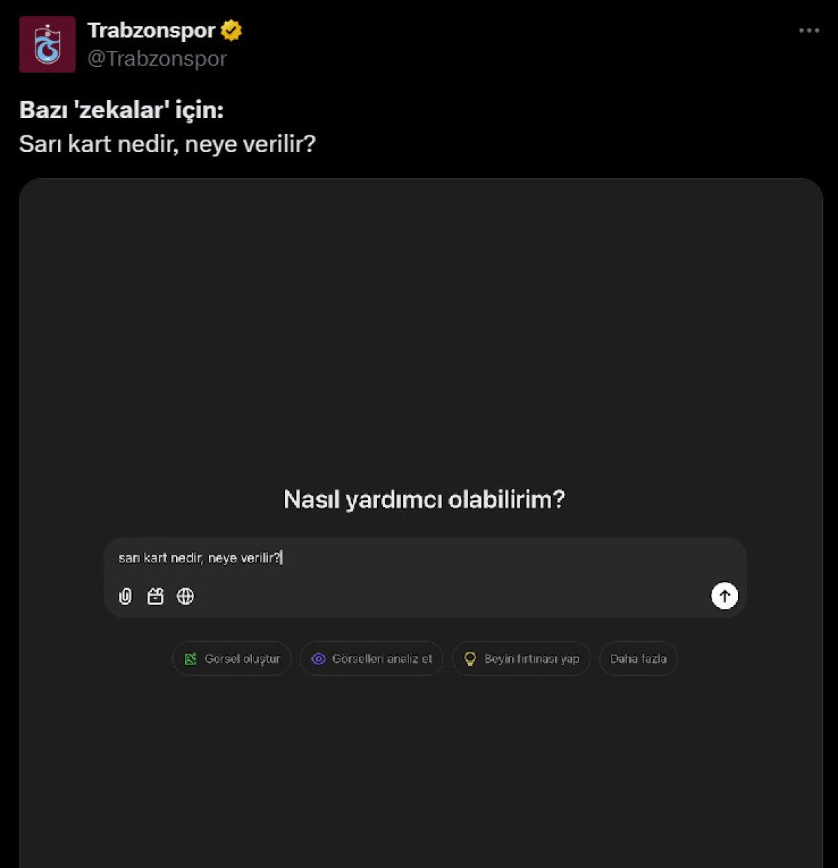 Bordo-mavililer, “Bazı ‘zekalar’ için: Sarı kart nedir, neye verilir?” sözlerinin yer aldığı bir gönderi yayınladı.