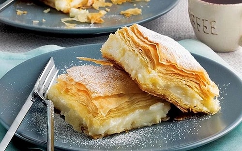 İlk olarak tatlının şerbeti için su ve toz şekeri derin bir tencerede, kısık ateşte kaynamaya bırakın. Şurup kıvamını alan şerbete limon suyunu ekledikten sonra soğuması için ocaktan alın. Muhallebisi için süt, yumurta sarıları, un, mısır nişastası, toz şeker ve bir tutam kadar karabiberi bir tencereye alın. Orta ateşte koyu bir kıvam alana kadar pişirin. Ocaktan aldıktan sonra bir mikser ya da el blender’ı yardımıyla karıştırın. Tereyağını kısık ateşte yakmadan eritin. Büyük uzunluk fırın tepsisini eritilmiş tereyağıyla yağladıktan sonra bir adet baklava yufkasını fırın tepsisine serin. Tatlının taban kısmını oluşturacak olan on adet baklava yufkasının ortalarını tereyağıyla yağlayıp, üst üste dizin. Hazırladığınız sıcak muhallebiyi yufka katlarının üzerine bir kaşık yardımıyla dağıtın. Krema üzerine bir kat hazır baklava yufkası serin. Üzerini tereyağıyla yağladıktan sonra kalan yufkaları her birinin ortasını yağlayarak üst üste dizin. Kalan tereyağını en üstte kalan yufka katının üzerine sürdükten sonra keskin bir bıçak yardımıyla böreği kare dilimlere ayırın. Evvelce ısıtılmış 180 derece fırında üzeri renk alana kadar yaklaşık 40 dakika pişirdiğiniz tatlının üzerine fırından çıkar çıkmaz soğuk şerbeti gezdirin. Böreği dilimledikten sonra tercihinize nazaran ılık yahut soğuk olarak servis edebilirsiniz.