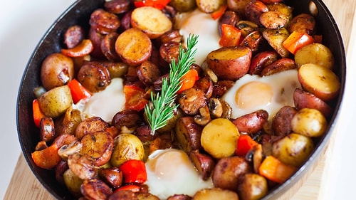 1. Tipik bir pazar kahvaltısı için gereken her şey bu tavada!