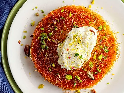 Şeker ve suyu bir sos tenceresine alıp şerbeti hazırlayın. Kaynadıktan sonra altını kapatıp limon suyunu ek edin ve soğumaya bırakın. Tereyağını eritin. Sonrasında kadayıflara birinci evvel yarısını ekleyip yeterlice karıştırın sonrasında kalan yarısını ek edip karıştırmaya devam edin. Tavayı tereyağlayın. Sonrasında bir kat kadayıfı tavaya koyup üzerine düzgünce bastırın. Ortasına künefe peynirini koyup üzerine bastırın. Sonrasında altı kızaran künefeyi aykırı çevirin. İki tarafı da kızardıktan sonra sıcak künefenin üzerine soğuk şerbeti gezdirin üzerine fıstık koyarak servis edin.