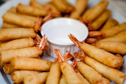 Yufkaları bir tezgaha serin. Eni karideslerden daha dar olacak biçimde uzun şeritler kesin. Yufkaların ortasına ayıklanmış karidesleri yerleştirip karideslerin her iki kenarı da dışarıda kalacak halde sarın ve ucuna hafif su sürüp yapıştırın. Sardığınız börekleri kızgın yağda kızartın. Kağıt havlu üzerine alıp fazla yağını çektirin. Sosu için süzme yoğurt ve mayonezi geniş bir kaseye alın. Ezdiğiniz sarımsak, ince kıydığınız kekik, tuz ve karabiberi ekleyip karıştırın. Bir arada servis yapın.
